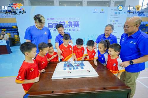 11日下午,组委会联合补水啦举办了首届家庭亲子赛。让家长与孩子在球场上,并肩作战,相互配合,共同面对挑战。说到举办亲子赛的初心,星耀未来全国组委会秘书长李宏亮说到:通过亲子赛,可以增进亲子关系,全家一起享受运动的乐趣!